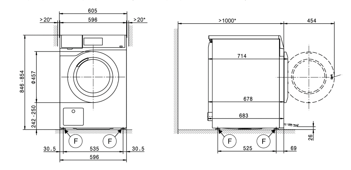 Схема встраивания для профессиональной стиральной машины Miele PWM 908 EL DP белый