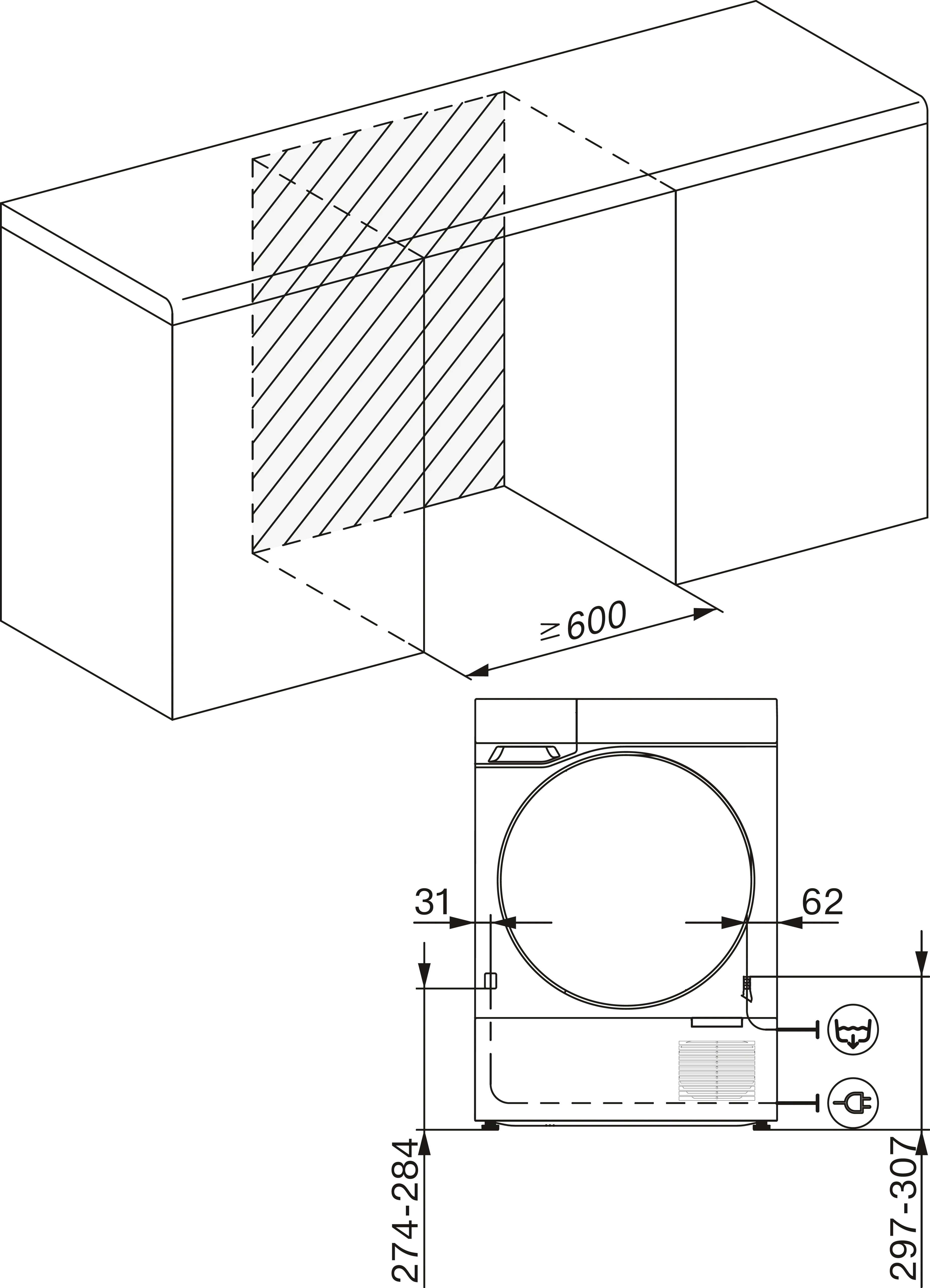 Схема встраивания 1 для сушильной машины Miele TQ 1000 WP Nova Edition