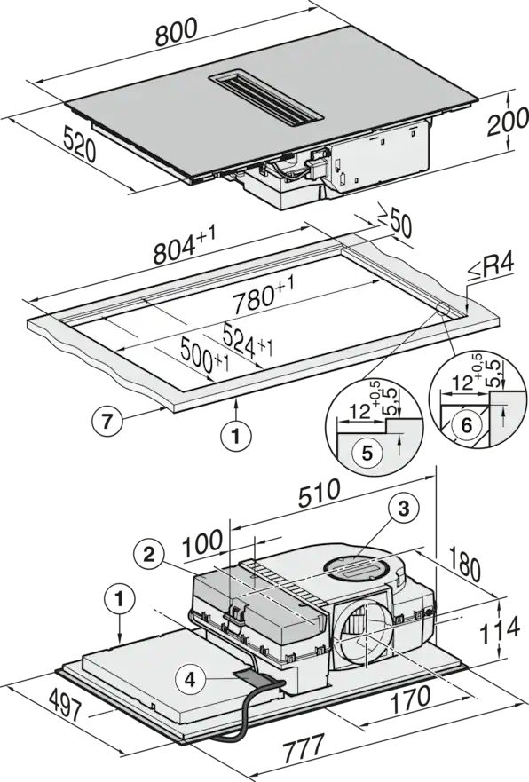 Схема встраивания 2 для варочной панели Miele KMDA 7473 FL-U