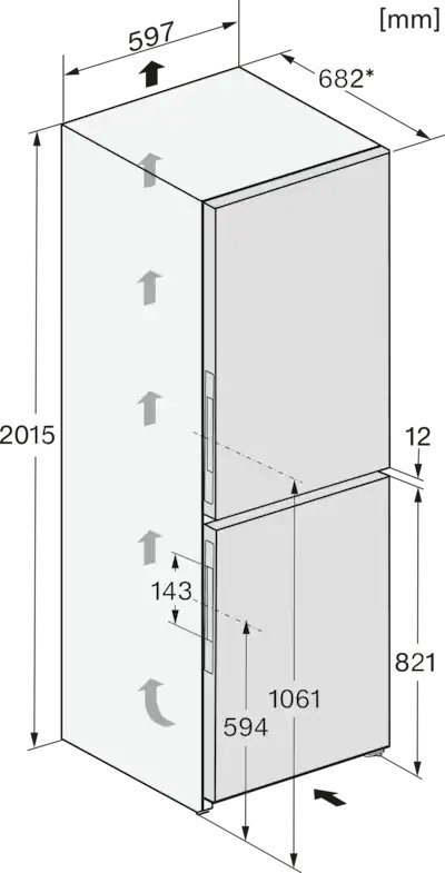 Схема встраивания 1 для холодильника Miele KFN 4795 CD Blackboard