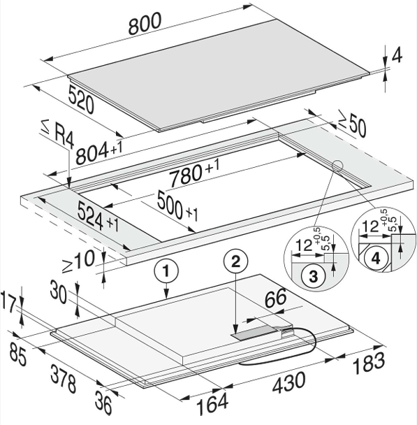 Схема встраивания для варочной панели Miele KM 7474 FL 125 edition