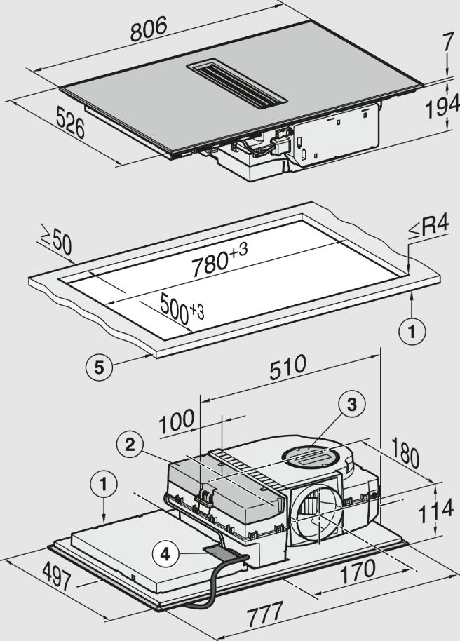 Схема встраивания 1 для варочной панели Miele KMDA 7272-1 FR