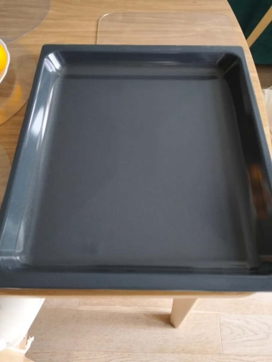 Красивый,новый,оригинальный,качественный.Как и вся продукция,производимая Miele. В духовке был один противень,приобрела второй.