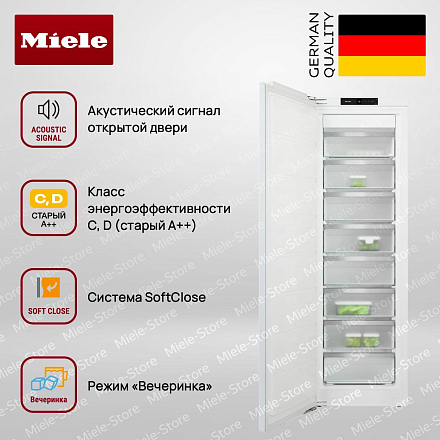Морозильник Miele FNS 7740 D оснащен системой SoftClose, которая обеспечивает мягкое и бесшумное закрытие двери. А акустический сигнал открытой двери и изменении температуры в морозильном отделении помогают контролировать работу устройства и своевременно реагировать на любые изменения.