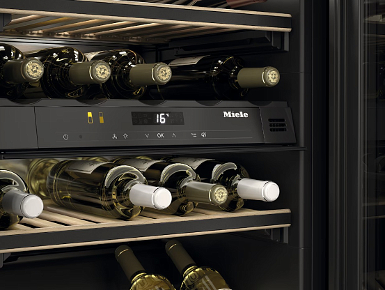 Встраиваемый винный холодильник Miele KWT 6422 IG в элегантном жемчужно-бежевом цвете Pearl beige станет идеальным дополнением для вашего интерьера, обеспечивая не только стиль, но и функциональность. Его тонированная стеклянная дверь с УФ-фильтром защищает содержимое от вредного воздействия света, сохраняя качество вина на высшем уровне. Общий полезный объем составляет 104 литра, что позволяет вместить до 33 бутылок бордо объемом 0.75 литра. Динамическая система охлаждения DynaCool равномерно распределяет холодный воздух по всему пространству, а система Silence обеспечивает тихую работу устройства.