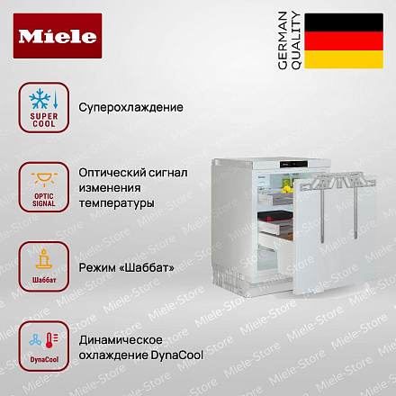 В этом холодильнике предусмотрены три полки и дверные полки ComfortClean, которые можно легко снять и помыть в посудомоечной машине, что обеспечивает удобство и гигиеничность. Функция суперохлаждения Super Cool позволяет быстро снизить температуру для сохранения свежести продуктов. Режимы «Шаббат» и «Отпуск» добавляют гибкости в использовании, а система SoftClose гарантирует плавное закрытие дверцы. Безопасность обеспечивается функцией блокировки, а акустический и оптический сигналы предупреждают о незакрытой двери. Дверь оснащена выдвижными петлями, что позволяет легко встроить холодильник в нишу высотой 82-88 см, шириной 60 см и глубиной 56 см. Максимальный вес фронта дверцы составляет 10 кг, что делает его подходящим для различных вариантов оформления.