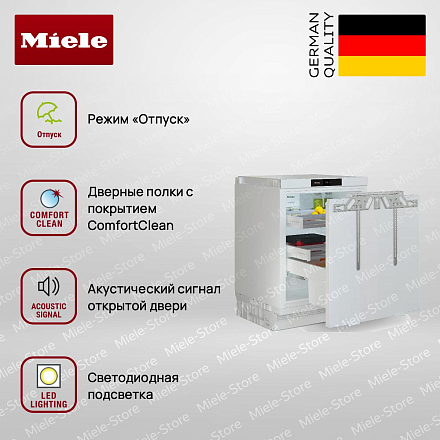 Встраиваемый холодильник Miele KU 7030 D - это современное и стильное решение для вашего кухонного пространства. Изготовленный в Германии, этот холодильник без морозильника предлагает общий полезный объем 124 литра, что делает его идеальным выбором для компактных кухонь. Динамическая система охлаждения DynaCool обеспечивает равномерное распределение температуры по всей камере, а автоматическое размораживание упрощает уход за устройством. Эстетика и функциональность сочетаются в этом приборе благодаря сенсорным переключателям FreshTouch и цифровому дисплею, которые позволяют легко управлять настройками. Светодиодное освещение обеспечивает яркое и экономичное освещение внутреннего пространства.