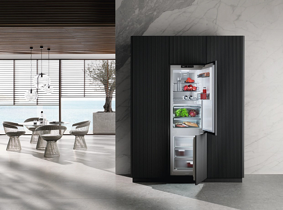 Встраиваемый холодильник Miele KFN 7744 C – это воплощение немецкой надежности и элегантности, идеально подходящее для современного интерьера. Белоснежный корпус гармонично впишется в любую кухню, а благодаря компактным размерам (высота 177 см, ширина 55.9 см, глубина 54.6 см) и возможности перевешивания дверей, модель легко адаптируется к планировке пространства. Динамическая система охлаждения DynaCool обеспечивает равномерное распределение температуры, а автоматическое размораживание избавляет от лишних хлопот. Внутреннее пространство продумано до мелочей: три регулируемые по высоте полки из безопасного стекла, полка для бутылок из хромированного металла и два выдвижных ящика PerfectFresh Pro™ для хранения свежих продуктов.