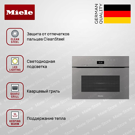 Встраиваемая микроволновая печь Miele H 7440 BMX GRGR — это воплощение современного дизайна и передовых технологий, созданный для тех, кто ценит качество и функциональность в каждой детали. Его графитовый серый цвет Graphite Grey придает ей стильный, элегантный вид, который гармонично впишется в любой интерьер кухни. Особое покрытие CleanSteel обеспечивает защиту от отпечатков пальцев, благодаря чему поверхность всегда остается чистой и презентабельной без лишних усилий. Рабочая камера выполнена из высококачественной нержавеющей стали, что гарантирует долговечность и простоту ухода, а дверца CleanGlass добавляет эстетики и удобства в эксплуатации.
