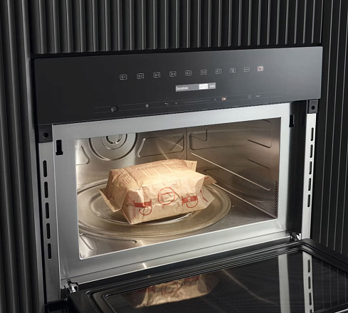 Микроволновая печь Miele M7244TC EDST/CLST линейки PureLine отличается от аналогов большим объёмом внутренней камеры (46 литров), а также инновационным кварцевым грилем. С её помощью можно не только разогревать, но и полноценно готовить пищу.