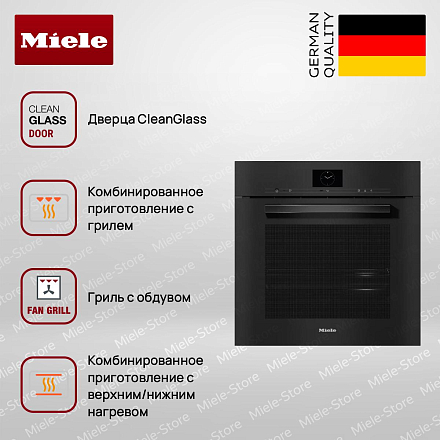 Устройство оснащено проводным термощупом, системой SoftClose / SoftOpen, дверцей CleanGlass и полностью откидным ТЭНом гриля, что делает его использование максимально удобным и безопасным. DirectWater с подключением к водопроводу и сливу упрощает процесс наполнения и слива воды, а сливной фильтр предотвращает засорение системы. Легко снимаемые боковые решетки, универсальный противень и решетка с покрытием PerfectClean, а также телескопические направляющие FlexiClip обеспечивают удобство и комфорт в эксплуатации. Все эти функции и возможности делают комби-пароварку Miele DGC 7665 HC Pro Obsidian Black идеальным выбором для тех, кто ценит качество, стиль и функциональность.