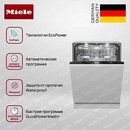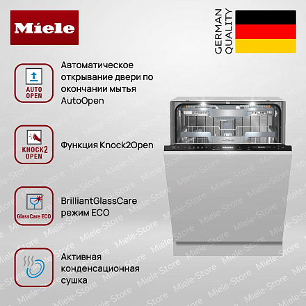 Посудомоечная машина Miele G7695 SCVi XXL — полновстраиваемая модель с автоматическим дозированием благодаря AutoDos со встроенным PowerDisk. Прибор создан для кухонь с фасадами без ручек. благодаря функции K2O открывается при нажатии на фасад.