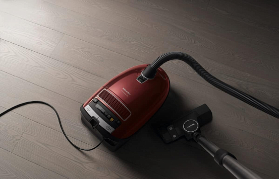 Пылесос Miele Complete C3 PowerLine SGDF5 в мангово-красном цвете - это воплощение современного дизайна и высоких технологий. Изготовленный в Германии, этот прибор сочетает в себе надежность и стиль, что делает его идеальным выбором для любого интерьера. Его плавные линии и яркий цвет придают ему элегантность и привлекательность. Эргономичная ручка обеспечивает удобство при переноске, а трехточечная система передвижения и не повреждающие пол колеса на стальных осях делают его маневренным и легким в управлении.