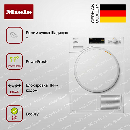 Сушильная машина Miele TCA523WP - это непревзойденное сочетание технологий и элегантного дизайна. Выполненная в цвете "белый лотос", она гармонично впишется в любой интерьер. Фронтальная загрузка и наклонная панель управления под углом 5° обеспечивают удобство использования. Дверца, также выполненная в белом цвете, открывается влево, что позволяет компактно разместить устройство в любом пространстве. Высококачественный сотовый барабан из нержавеющей стали гарантирует бережное обращение с тканями, а светодиодная подсветка внутри добавляет комфорта в процессе эксплуатации.