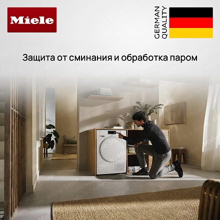Система отвода конденсата встроена, а емкость для его сбора легко очищается, что облегчает уход за устройством. Индикаторы остаточного времени и выполнения программы помогают планировать время, а отложенный старт (1-24 часа) дает возможность начать процесс в удобное время. Безопасность обеспечивается блокировкой ПИН-кодом, а защита от сминания и функция легкого разглаживания заботятся о внешнем виде одежды. Мотор ProfiEco гарантирует надежность и долговечность работы, снижая уровень шума и вибрации.