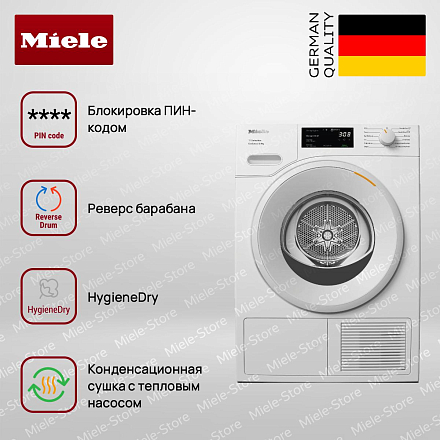 Безопасность и удобство использования также на высоте: предусмотрена блокировка ПИН-кодом, звуковой сигнал, индикаторы "Вылить конденсат" и "Очистить фильтр". Встроенная система отвода конденсата и емкость для его сбора обеспечивают чистоту и удобство в эксплуатации. Мотор ProfiEco гарантирует долговечность и надежность работы устройства. Сотовый барабан и реверсное движение способствуют равномерному распределению вещей и предотвращают их спутывание.