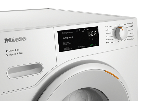 Сушильная машина Miele TSD643WP поддерживает установку в колонну, Side-by-Side и под столешницу, что делает ее универсальным решением для любого пространства. Управление осуществляется с помощью поворотного переключателя и дисплея DirectSensor, который отображает всю необходимую информацию, включая индикатор остаточного времени и выполнения программы. Отложенный старт с возможностью настройки от 1 до 24 часов позволяет планировать процесс сушки по вашему расписанию.