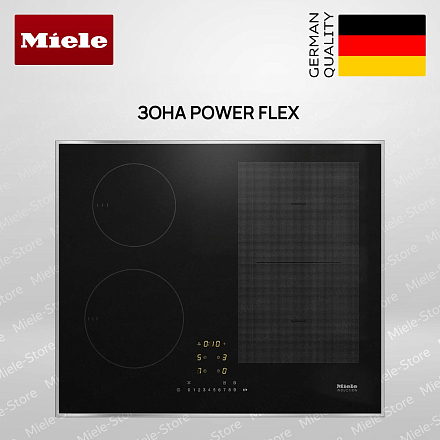 - Функция PowerFlex позволяет комбинировать конфорки для создания большой варочной зоны, что особенно удобно при приготовлении больших блюд или использовании крупной неформатной утвари.