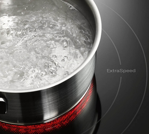 При активации данной функции конфорка на некоторое время включается на полную мощность, после чего автоматически переключается назад на заданную степень нагрева. Это позволяет значительно ускорить процесс закипания.