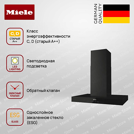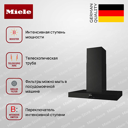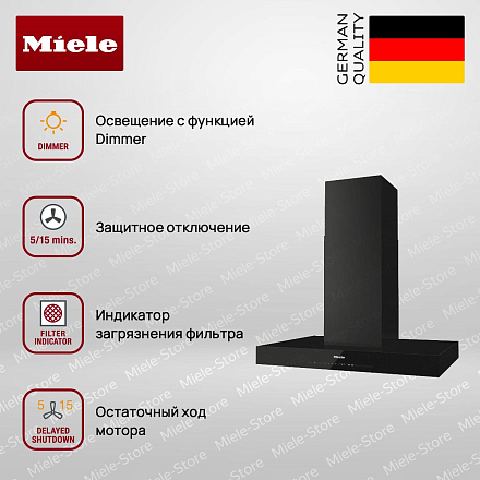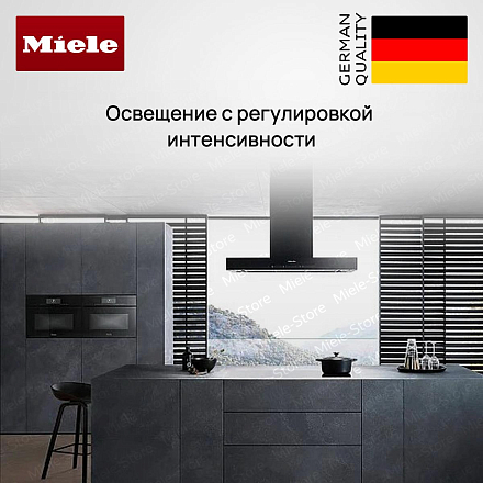 Вытяжка Miele DA 6698 W OBSW снабжена мощным двигателем, который позволяет ей быстро очищать воздух в помещении. Он характеризуется настенным типом установки и выполнена в цвете «Черный обсидиан». Девайс удобен по своим габаритам: высота — 71-103 см, ширина — 89,8 см, глубина — 50 см. Простая система управления клавишами, сенсорными переключателями и мобильным приложением даёт возможность быстро выбирать требуемый уровень производительности, а также включать турборежим и освещение.