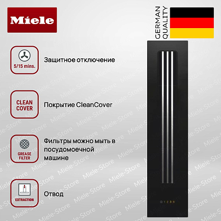 Данная модель является настоящим представителем немецкого качества. Она обладает стильным обсидиановым черным цветом, который легко впишется в любой интерьер. Удобное для чистки покрытие внутренней части корпуса CleanCover значительно упрощает процесс ухода. Три уровня мощности и интенсивной ступенью для максимально эффективного удаления запахов. Жировой фильтр из нержавеющей стали можно легко очистить в посудомоечной машине. Экономичный мотор постоянного тока и класс энергоэффективности A+ делают использование этой модели экономичным. Вывод: безусловно, этот продукт отличается высоким качеством, продуманным дизайном и функциональностью. Он станет незаменимым помощником на вашей кухне, обеспечивая комфорт и чистоту воздуха. Техника этого бренда всегда отличается надежностью, долговечностью и стилем, что подтверждается и в этой модели.
