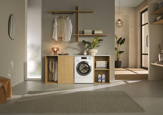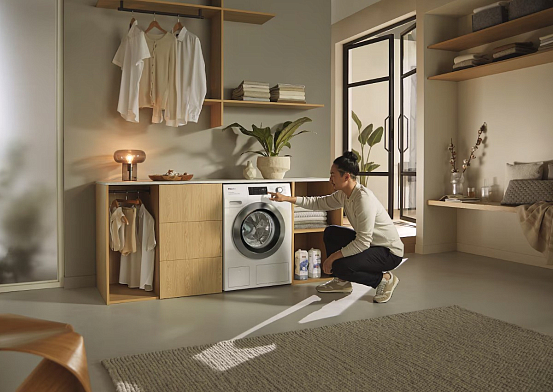 Стиральная машина Miele WEG895 WCS из серии W1 White Edition — это воплощение современного дизайна и передовых технологий, созданных для комфортной и эффективной стирки. Ее элегантный корпус в цвете белый лотос гармонично впишется в интерьер любой ванной комнаты или прачечной, придавая помещению чистоту и изящество. Благодаря фронтальной загрузке и продуманной конструкции устройство легко устанавливается как отдельно, так и в колонну, а также Side-by-Side, что позволяет максимально рационально использовать пространство. Возможность встраивания под столешницу добавляет универсальности, позволяя интегрировать технику в кухонный гарнитур или мебель для ванной комнаты, сохраняя общий стиль помещения.