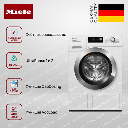 В комплекте предусмотрены три капсулы UltraPhase 1 и 2, а также купон на 5 картриджей Miele UltraPhase, что позволяет сразу начать пользоваться всеми преимуществами автоматического дозирования и получить максимальный эффект от стирки. Длина сетевого кабеля 2 метра обеспечивает удобство подключения в стандартных условиях.