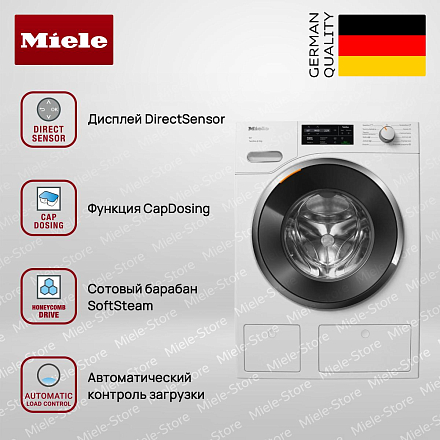 Стиральная машина Miele WWG660 WCS интерфейс на иностранном языке вмещает до 9 кг белья и оснащена отсрочкой запуска до 24 часов.