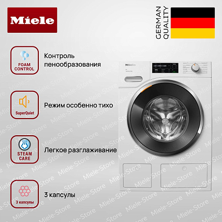 В некоторые модели Miele входит набор из 3 капсулы, содержащие специализированные моющие или ухаживающие средства. Капсула WoolCare разработана для шерсти и кашемира, минимизируя риск их деформации или усадки. Капсула для стирки спортивной одежды эффективно и бережно удаляет пятна и запахи пота, не нарушая материал. Капсула с кондиционером для белья AQUA придаёт вещам мягкость, свежесть и приятный аромат.