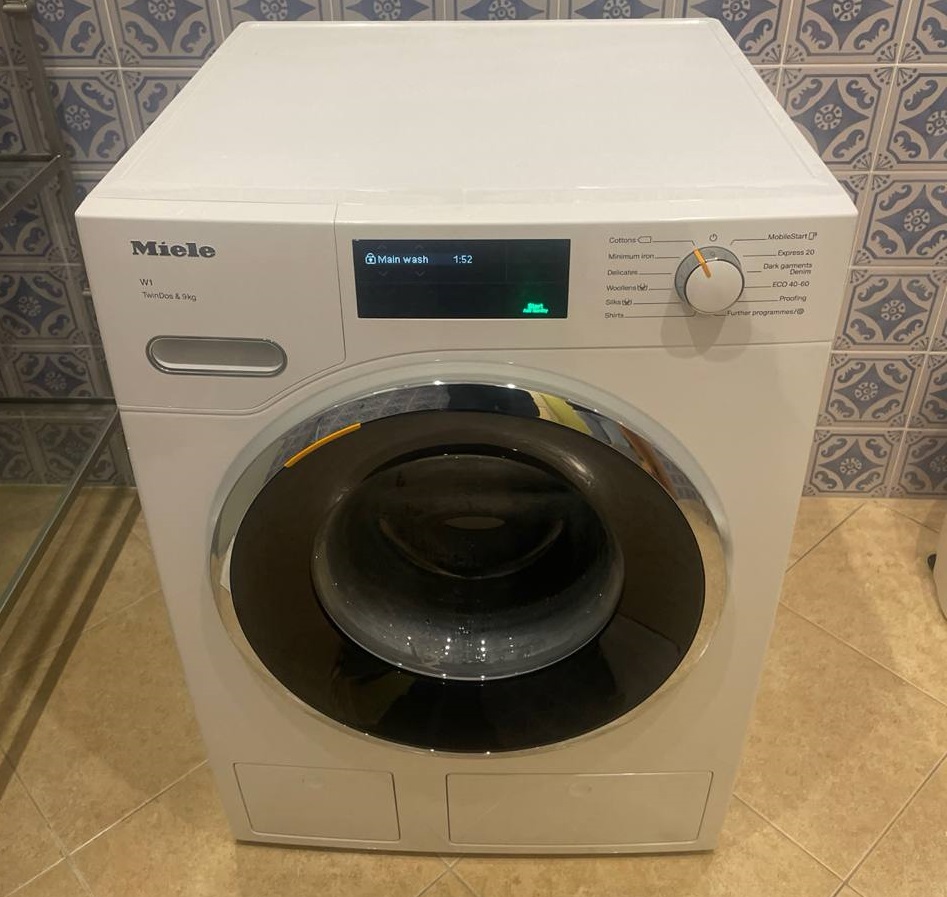 Стиральная машина Miele WWG760WPS представлена в белом цвете с габаритами 85×59,6×64,3 см, что говорит о том, что техника не займет много пространства. Благодаря инверторному мотору техника работает тише, потребляет меньше электроэнергии, сохраняя при этом необходимую мощность. При этом двигатель долговечен. Оборудование обладает отжимом в 1400 оборотов в минуту. За счет небольшой глубины данную модель предпочитают владельцы небольших квартир, студий. Вместительность барабана 9 кг, поэтому ее хватит и для одиночек, и для семей с детьми. Если вы забыли доложить вещи, а стирка уже идет, функция дозагрузки поможет вам.